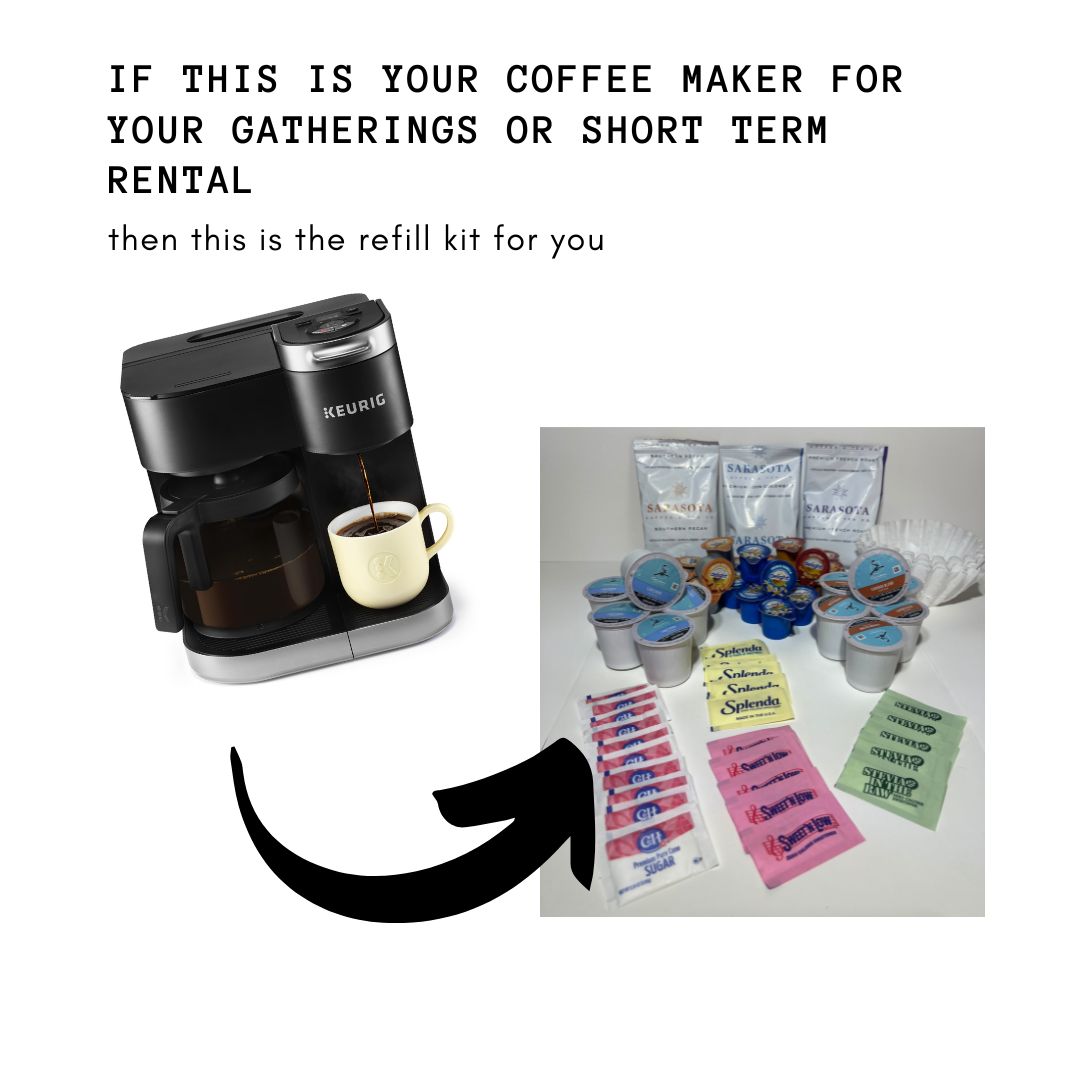 This kit makes 48 cups of coffee, a $65 value for only $45.00. Perfect for airbnb, VRBO, corporate offices, holiday gatherings and more. Find on Amazon.